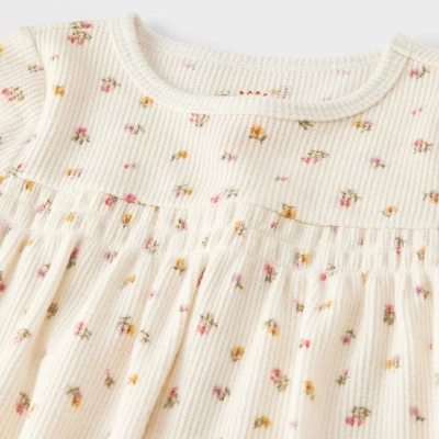 Freshen up your baby’s wardrobe with the textural style of the Long-Sleeve Waffle Romper from Cat & Jack™. This long-sleeve romper features waffle-knit detailing, smocking, and elastic at the front, elevating the look. Tailored of soft and stretchy fabric blend, this ankle-length romper comes complete with crotch snaps for easy dressing and diaper changes.