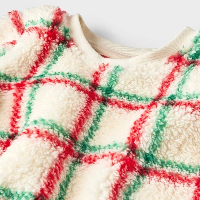 Your baby will stay warm and toasty in holiday style by wearing the Plaid Faux Shearling Top and Bottom Set from Cat & Jack™. This off-white top and bottom set includes a long-sleeve pullover sweater and matching jogger pants, both covered with a plaid pattern with red and green hues for a festive vibe. Made with faux shearling, this top and bottom set helps keep them warm and comfortable, whether you add them to your own baby’s collection or gift them to a newborn.