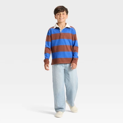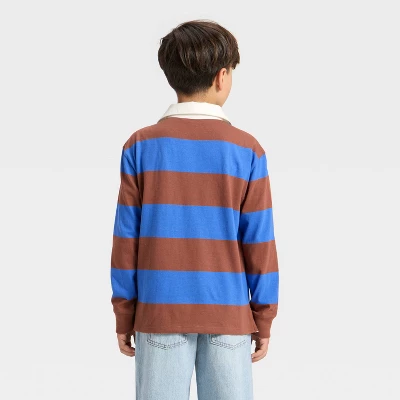 Upgrade your kid’s everyday wardrobe with this Long-Sleeve Striped T-Shirt from Cat & Jack™. Tailored in a regular-fit, the long-sleeve tee is made from a shrink-resistant cotton-recycled polyester blend jersey fabric for all-day comfortable wear during any activities. Designed with a classic polo collared neckline with a two-button placket for ease of wear, they can pair the rugby striped tee with jeans or chino pants and shoes to complete the look.