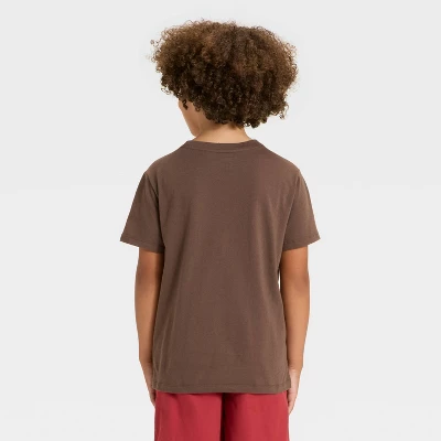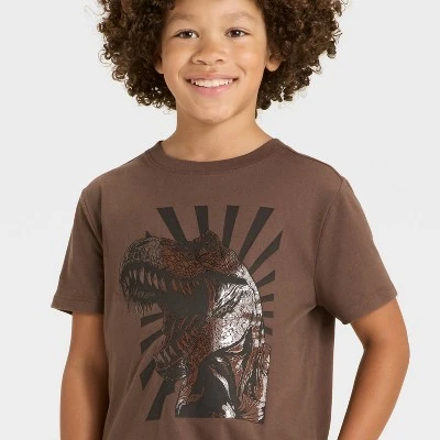 This Short-Sleeve Dinosaur Graphic T-Shirt from Cat & Jack™ brings a rawr-tastic update to their casualwear wardrobe. Made from cotton-recycled polyester blend jersey fabric, this short-sleeve T-shirt brings cool comfort to their day, and the below waist length allows them to wear it tucked in or untucked. Designed in a solid hue, this crewneck tee features a large graphic of a roaring dinosaur for fun style.