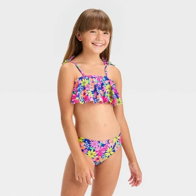 Your kid will be ready to blossom during the summer by wearing the “Summer Blossom” Floral Printed Bikini Set from Cat & Jack™. This two-piece bikini set includes a flounce swim top and a matching hipster swim bottom, both covered with dainty floral print to complete the sweet look. The top comes with tie detailing along the shoulders straps, and a pull-on style bottom. This printed bikini set is made with soft and stretchy fabric for comfort while swimming or indulging in other activities. Plus, they’ll stay shielded from harmful sun rays with the UPF 50+ rated fabric.
