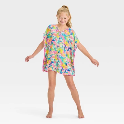 Your kiddo will kick back in style whether playing at the beach or relaxing poolside with this Floral Cover-Up Top from Cat & Jack™. This sleeveless cover-up top features floral print with pom-pom detailing on the edges and a turnback hem for a beautiful look they’ll love to show off. The lightweight fabric helps keep them comfortable, while the opaque lining provides extra protection against harsh sun rays. Falling below-hip length, they can pair it with flip-flops, shades and a hat for a fun day under the sun.