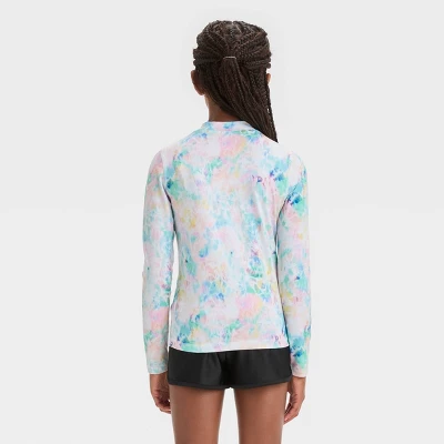For fun watery adventures, your child will love reaching for this Tie-Dye Design Long-Sleeve Rash Guard Swim Top from Cat & Jack™. This long-sleeve rash guard is made from a soft and stretchy fabric to offer them comfort in or out of water, while the UPF 50+ material helps keep their skin shielded from the sun. Designed in an athletic fit, this crewneck rash guard features a colorful tie-dye print to add a fun pop to their sunny ensembles.