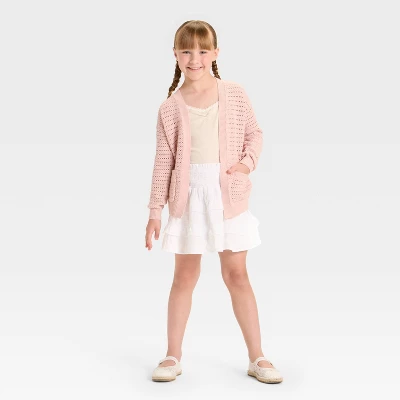 Give your kid’s wardrobe a fresh update with this Pointelle Cardigan from Cat & Jack™. Made of cotton-recycled polyester blend fabric, this cardigan features a pointelle pattern for a classic look. It comes with an open front for ease of wear and has long sleeves with ribbed cuffs for a snug fit. Tailored in a classic fit, this below-waist sweater vest is ideal for any casual outing.