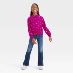 Girls’ Long Sleeve Woven Ruffle Shirt – Cat & Jack™ Teal Blue