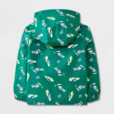 Your little explorer will be ready for fun adventures in this Racecar Softshell Jacket from Cat & Jack™. Made of recycled polyester-spandex blend fabric for cozy comfort, this softshell jacket features allover racecar graphics for a cool look. It has a hood for extra coverage, while the long sleeves with elasticized cuffs provide a snug fit. This regular-fit jacket also has a front full-length zipper for easy on and off, and kangaroo pockets provide space for stashing small items.