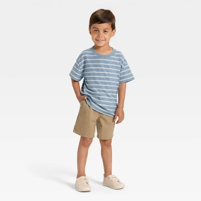 Bring classic style to your toddler’s day with this Short-Sleeve Jacquard T-Shirt from Cat & Jack™. Made from cotton-polyester blend, shrink-resistant fabric, this short-sleeve T-shirt brings cool comfort to their day. Featuring jacquard-knit stripes with a chest patch pocket, this crewneck tee makes a great pairing with a variety of shorts, skirts or jogger pants.