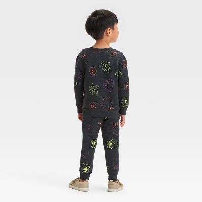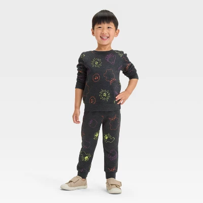 Create a noticeable Halloween look for your toddler with the Skeleton Halloween Long-Sleeve T-Shirt and Jogger Pants Set from Cat & Jack™. This Halloween outfit set includes a long-sleeve T-shirt and a pair of pull-on jogger pants, both with a printed pattern for a coordinated look. Crafted from jersey and fleece fabric, this T-shirt and jogger pants set helps keep them warm and comfortable all day long.