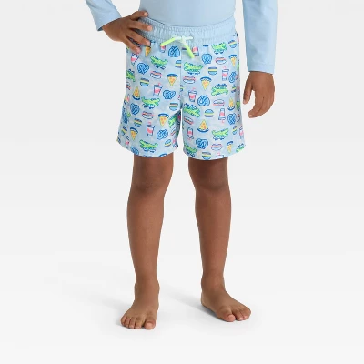Get your toddler ready for beach days or pool trips in cool comfort with these Snack Time Swim Shorts from Cat & Jack™. Boasting allover print of pizza, burgers, pretzels and more, these regular-rise swim shorts are made from 100% recycled polyester twill fabric with lining to offer complete comfort in or out of the water. A full elastic waistband with a front drawstring provides a snug fit, and the UPF 50+ rated material helps protect their skin from harmful UV rays.