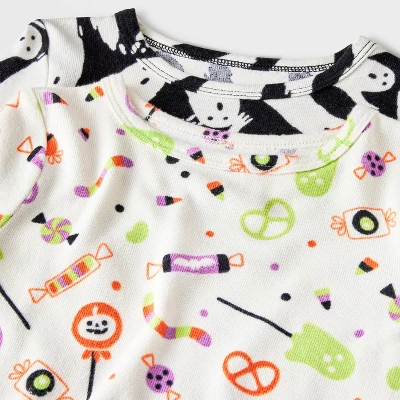 This 4-Piece Ghosts and Candy Pajama Set will have your little one eagerly awaiting the Halloween festivities. Two pairs of long-sleeve sleep shirts and PJ pants are included in this coordinating pajama set, each with a pull-on design for ease of dressing, recycled polyester with spandex for all-night comfort, and ribbed edges and elasticized waistbands for a stay-put fit. The black pair is decorated with allover white ghosts print, while the other white pair showcases vibrant candy print for a sweet look.