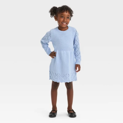 This Crewneck Dress from Cat & Jack™ in a solid color detailed with sparkly metallic shine features pointelle detailing on the long sleeves and above the hem for charming flair. The midweight fabric along with snug ribbed cuffs lends a cozy and comfortable fit, and the pullover style allows for quick and easy dressing. Complete the look with boots or shoes.