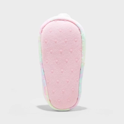 Bring a magical touch to your toddler’s footwear with these Unicorn Print Bootie Slippers from Cat & Jack™. The closed-toe booties feature a soft upper and insole with faux-fur lining to provide their feet all-day comfort, while the slip-on design allows for easy on and off. Featuring a 3D unicorn face detailing for a fun look, these medium-width slippers are great for winding down for bed or playing around the house.